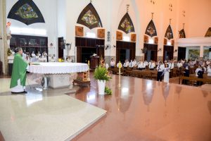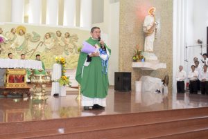 Mở đầu Thánh lễ, từ lời nói: “Tất cả là hồng ân”, cha Giuse mời cộng đoàn cùng dâng lên Thiên Chúa lời cảm tạ, vì 18 năm qua, từ khi ngài về phục vụ tại giáo xứ Tân Phước, cùng với sự cộng tác của mọi mọi thành phần trong giáo xứ, giáo xứ chúng ta đã luôn phát triển về đời sống đức tin cũng như cơ sở vật chất trong tình yêu của Thiên Chúa.”