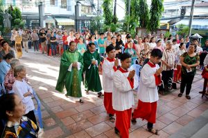 Thánh lễ khép lại lúc 8g15. Sau Thánh lễ, các linh mục cùng cộng đoàn ra trước tượng Tổng Lãnh Thiên Thần cùng nhau đọc một kinh Lạy Cha, ba kinh Kính Mừng, một kinh Sáng Danh, và kinh Tổng Lãnh Thiên Thần Micael cầu bầu cho giáo xứ luôn được bình an và hiệp nhất.