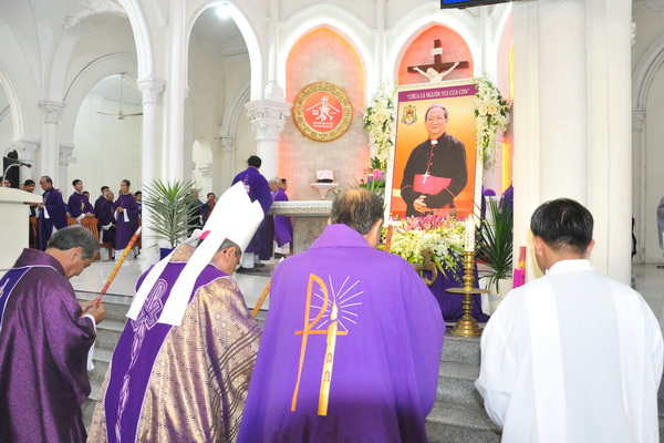 Mở đầu thánh lễ, Đức Cha Phêrô nhắc đến biến cố Đức Cố Tổng được Chúa gọi về ngày 07.03.2018 tại Rôma. Ngài qua đời khi đang làm Tổng Giám Mục Tổng Giáo phận Sài Gòn, nhưng cuộc đời Giám mục của Đức Cố Tổng gắn bó nhiều nhất là nơi Giáo phận Mỹ Tho. Suốt 15 năm (từ 1999 đến 2014). Tòa Giám mục là nơi ngài sống, nhà thờ Chánh tòa Mỹ Tho là nơi ngài thường xuyên dâng Thánh lễ, các nhà thờ trong Giáo phận cũng đều được Đức Cố Tổng yêu thương đến tận nơi dâng thánh lễ, cử hành phụng vụ, chăm sóc mục vụ.