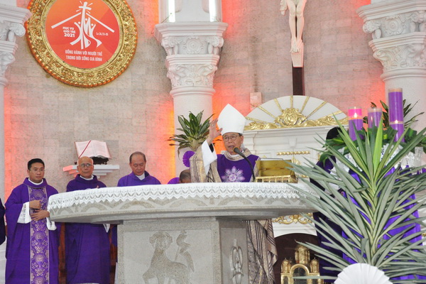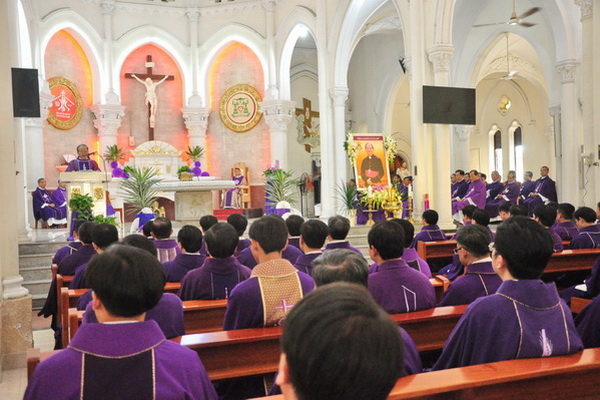 Theo thông lệ vào tháng 3, các linh mục trong Giáo phận tham dự ngày tĩnh tâm theo tỉnh, nhưng lần này Đức Cha Phêrô mời gọi quý cha quy tụ về nhà thờ Chánh Tòa tĩnh tâm chung, để sau đó quý cha dâng thánh lễ đồng tế cầu nguyện cho Đức Cố Tổng Phaolô Bùi Văn Đọc nhân ngày giỗ 3 năm (07.03.2018-07.03.2021).
