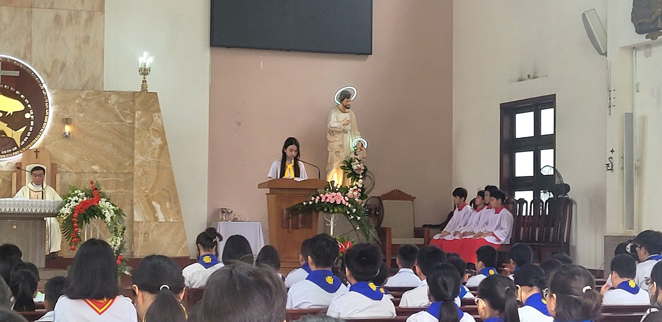 Trong bài giảng, Cha sở Vinh Sơn đặc biệt khuyến khích các em thiếu nhi hãy siêng năng đọc Kinh Mân Côi mỗi tối – để tạ ơn Thiên Chúa, xin Mẹ Maria chuyển cầu, cho gia đình được bình an, mạnh khỏe, và thêm lòng yêu thương.