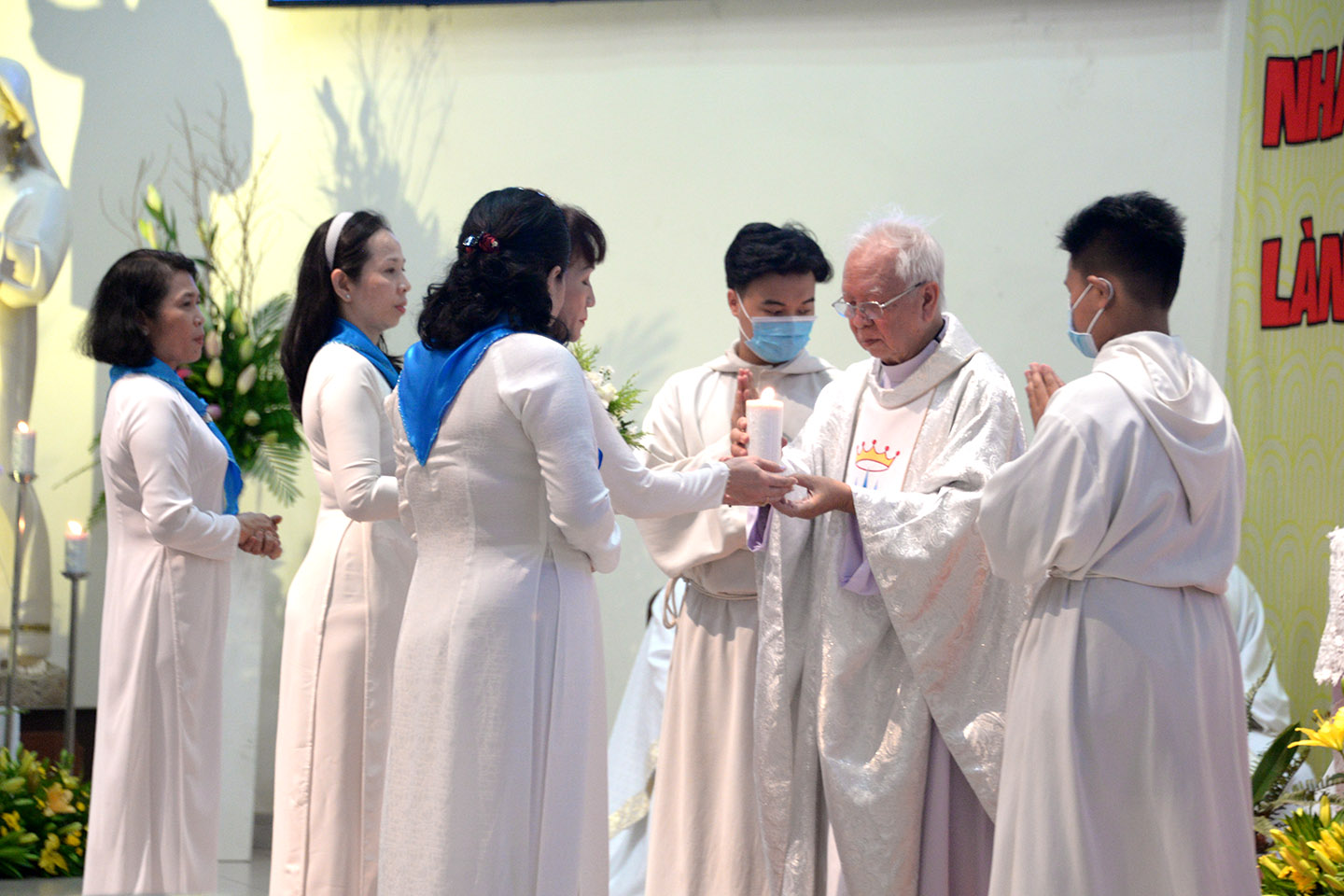 Thánh lễ được tiếp nối với phần Phụng Vụ Thánh Thể.Sau lời nguyện hiệp lễ,đại diện các bà mẹ Công Giáo hạt có tâm tình tri ân quý linh mục và cộng đoàn.Đáp từ, Linh mục Tổng Linh Hướng Các Bà Mẹ Công Giáo tổng giáo phận có những lời nhắn nhủ và chúc mừng bổn mạng các bà mẹ.
