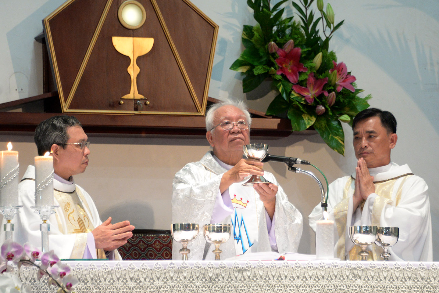 Sau đó,Linh mục hạt trưởng và cũng là linh hướng Các Bà Mẹ Công Giáo hạt chủ tế thánh lễ,đồng tế với ngài có linh mục Giuse Bùi Công Trác – Giám đốc Đại Chủng Viện Thánh Giuse Sài Gòn,Linh mục Phanxicô Xaviê Đậu Nguyễn Hoàng Linh -Tổng Linh Hướng Các Bà Mẹ CG Tổng giáo phận sài gòn- chánh xứ Nam Hòa,quý linh mục chánh xứ Phú Bình,Bắc Hà và quý linh mục tại giáo xứ Hòa Hưng,quý linh mục có liên hệ với các bà mẹ ở xa cũng về hiệp dâng thánh lễ.