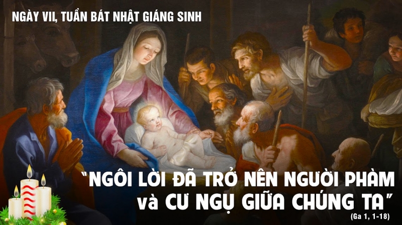 Thánh Gio-an làm chứng rằng: Ngôi Lời Thiên Chúa mặc xác thịt người phàm và đã ở giữa chúng tôi, và chúng tôi đã nhìn thấy vinh quang của Người, vinh quang của Con Một Thiên Chúa Cha, đầy ân sủng và chân lý: làm chứng về Đức Giê-su là Đấng Cứu Thế ra đời làm người để cứu chuộc nhân loại.