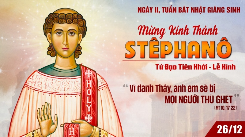 Hôm nay, Giáo Hội mừng kính Thánh Stêphanô – vị tử đạo tiên khởi – là một trong bảy vị phó tế đầu tiên được các Tông đồ tuyển chọn để cộng tác vào việc quản trị cộng đoàn qua việc phân phát thức ăn và chăm lo cho các bà goá trong cộng đoàn Hội Thánh sơ khai. Thánh Stêphanô là người đầu tiên được diễm phúc đón nhận cái chết tử đạo để minh chứng cho đức tin và lòng trung thành yêu mến nơi Đức Giêsu Kitô.
