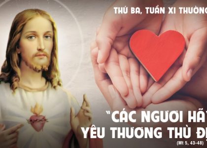 Xem chi tiết.....Thứ Ba trong tuần thứ Mười Một Mùa Quanh Năm 1 V 21:17-29; Tv 51:3-4,5-6,11,16; Mt 5:43-48 YÊU KẺ THÙ Những lời dạy của Chúa Giêsu mà Giáo Hội cho chúng ta...