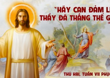 Xem chi tiết.....Thứ Hai trong tuần thứ Bảy Mùa Phục Sinh Cv 19:1-8; Tv 68:2-3,4-5,6-7; Ga 16:29-33 CAN ĐẢM ! THẦY ĐÃ THẮNG THẾ GIAN Tin Mừng hôm nay thuật lại buổi tâm sự...