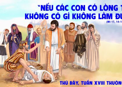 Xem chi tiết.....Thứ Bảy trong tuần thứ Mười Tám Mùa Quanh Năm St 6:4-13; Tv 18:2-3,3-4,47,51; Mt 17:14-20 Đức tin rất cần thiết Tin mừng...