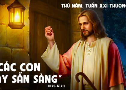 Xem chi tiết.....Thứ Năm trong tuần thứ Hai Mươi-Nhất Mùa Quanh Năm St 3:7-13; Tv 90:3-4,12-13,14,17; Mt 24:42-51 Hãy sẵn sàng vì không biết ngày giờ nào? ...