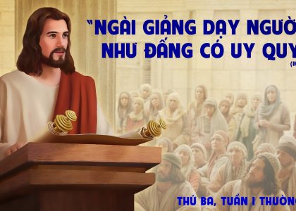 Xem chi tiết.....Thứ Ba Thứ Ba trong tuần thứ Nhất Mùa Quanh Năm Dt 2:5-12; Tv 8:2,5,6-7,8-9; Mc 1:21-28 Quyền uy cứu độ Theo Tin Mừng Mác cô, Chúa...