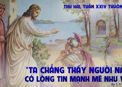 Xem chi tiết.....Thứ Hai trong tuần thứ Hai Mươi-Tư Mùa Quanh Năm 1 Cr 11:17-26,33; Tv 40:7-8,8-9,10,17; Lc 7:1-10 LÒNG TIN MẠNH MẼ “Đức tin là tin điều ta không...