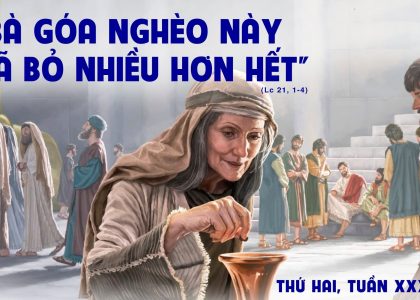 Xem chi tiết.....Thứ Hai Tuần XXXIV Thường Niên Thánh Cêcillia, trinh nữ, tử đạo, lễ nhớ Đn 1,1-6.8-20; Lc 21,1-4 CHO ĐI TẤT CẢ “Thầy bảo thật anh em: bà góa nghèo này...