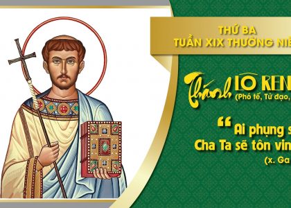 Xem chi tiết.....Thứ Ba Tuần XIX Thường Niên THÁNH LÔ-REN-XÔ, PHÓ TẾ, TỬ ĐẠO, lễ kính 2Cr 9,6-10; Ga 12,24-26 Như hạt lúa mì Thánh LAURENSÔ PHÓ TẾ, TỬ ĐẠO (+258)...