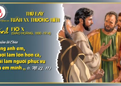 Xem chi tiết.....Thứ Bảy Tuần XX Thường Niên Thánh Piô X, Giáo hoàng, lễ nhớ Thánh Giuse Đặng Đình Viên, Linh mục (U1838), Tử đạo R 2,1-3.8-11;4,13-17; Mt 23,1-12 Ðề phòng thái...