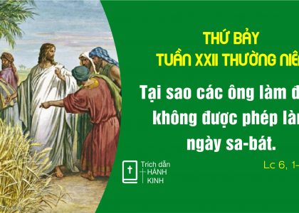 Xem chi tiết.....Thứ Bảy Tuần XXII Thường Niên Thứ Bảy đầu tháng. Ngày đền tạ trái tim vô nhiễm Đức Mẹ Cl 1,21-23; Lc 6,1-5 Ý Nghĩa Của Lề Luật Rồi Người...