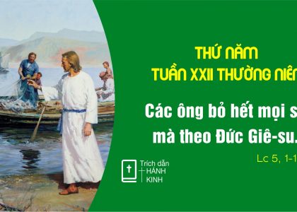 Xem chi tiết.....Thứ Năm Tuần XXII Thường Niên Thứ năm đầu tháng. Ngày các Linh mục Cl 1,9-14; Lc 5,1-11 Sự Hiện Diện và Tác Ðộng của Chúa Ông Simôn đáp: “Thưa Thầy,...