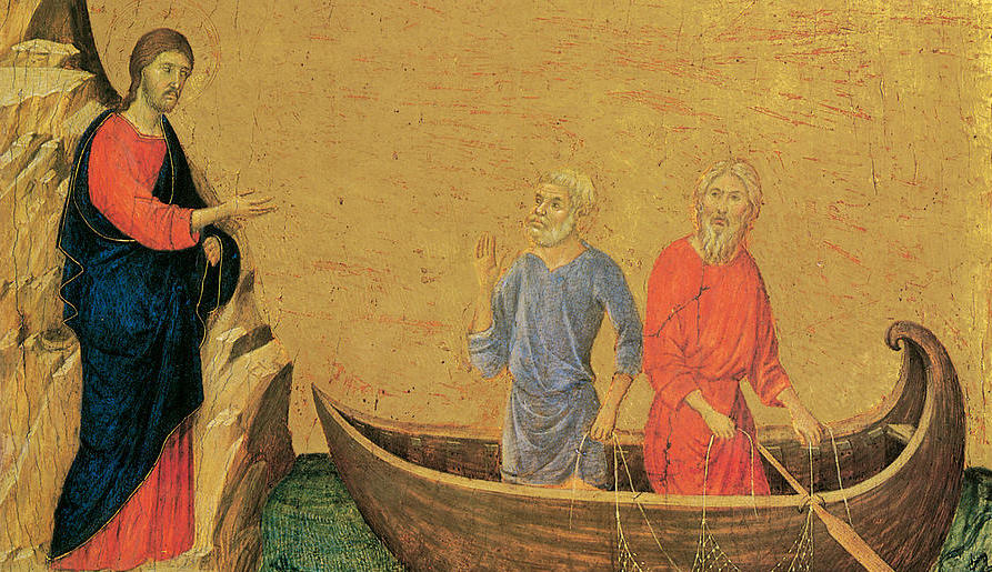 Người gọi các ông ngay trên đường đi dọc theo biển hồ, khi họ đang quăng chài, vá lưới. Lời mời gọi thật giản đơn, với tương lai được đổi nghề lưới cá thành “lưới người”. Các ông đáp lại thật mau mắn và ngay tức khắc. Họ sẵn sàng bỏ lại nghề đang gắn bó, bỏ lại cha để đi theo Người.