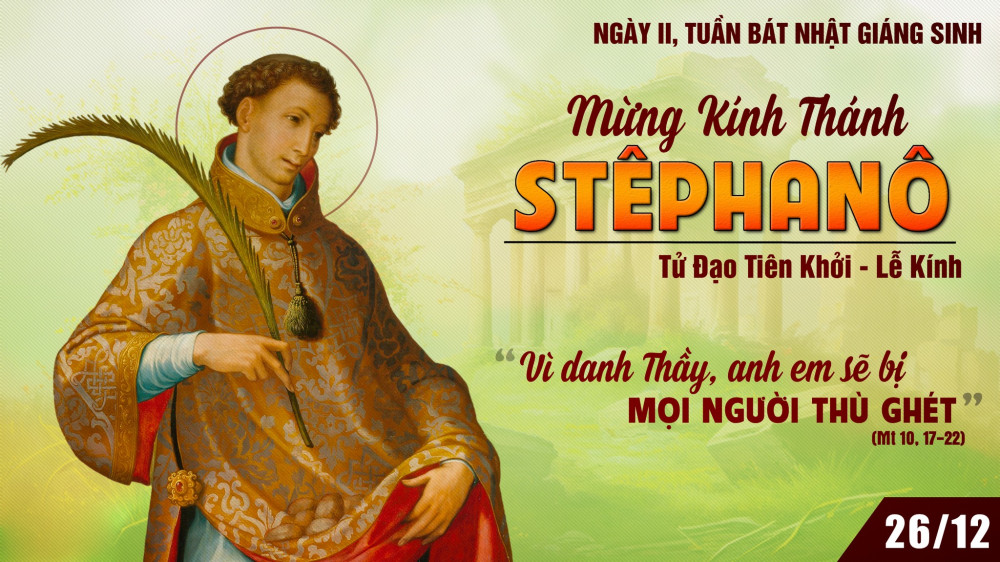 Hôm nay lễ kính thánh Stêphanô, vị tử đạo tiên khởi của Giáo Hội. Giữa bầu khí an bình hân hoan của Mùa Giáng Sinh mà mừng kính một vị tử đạo thì xem ra không bình thường, vì sự tử đạo thường gợi lên máu đào và chết chóc. Nhưng chắc chắn Giáo Hội đã có một lý do rất đặc biệt để mừng lễ của vị tử đạo tiên khởi này vào ngay sau Lễ Giáng Sinh.