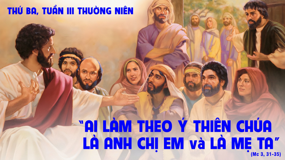 Giáo xứ và nhất là cộng đoàn tu trì, hay rất cụ thể, tất cả chúng ta đang hiện diện nơi đây, chính là hình ảnh gia đình mới của Đức Giê-su : chúng ta không phải là ruột thịt, nhưng bởi việc lắng nghe và sống Lời Chúa, qua đó chúng ta đón nhận Ngôi-Lời vào trong cuộc đời của chúng ta (bởi vì Lời Chúa và Ngôi Vị của Chúa là một), như Đức Maria, chúng ta trở thành anh chị em của Chúa Giêsu, và như thế trở thành con của cùng một Mẹ, là Mẹ Maria. Sự qui tụ đang lớn dần ở trong Giáo Hội và nhất là trong mỗi xứ đạo hay trong Hội Dòng của chúng ta là một hình ảnh rất đẹp và cụ thể, nói lên gia đình mới của Đức Giê-su.