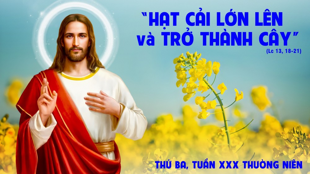 Chúa ví Nước trời như hạt cải. Cải là một thứ rau bên Thánh địa có nhiều. Hạt cải rất nhỏ. Để nói về sự bé nhỏ của vật gì, người ta thường ví: nó to bằng hạt cải! nghĩa là vật ấy nhỏ lắm. Đức Giêsu cũng có lần nói đến sự bé nhỏ của hạt cải: “Nếu anh em có đức tin bằng hạt cải…”. Nhỏ bé thế mà gieo vào đất tốt, cây cải mọc cao lớn, cành lá xum xuê, chim trời đến đậu và có thể làm tổ được.