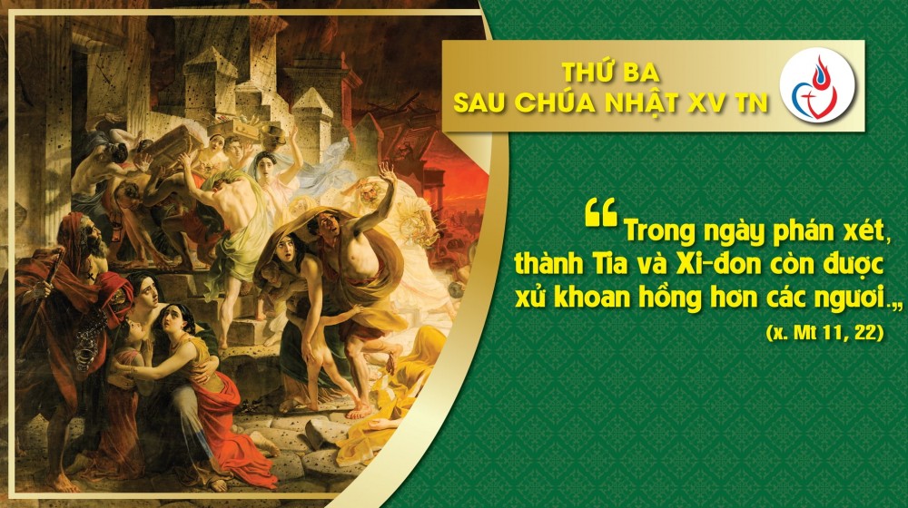 Kho-ra-din, Bết-xai-đa, Ca-phác-na-um đã được nghe biết Tin mừng của Chúa Giêsu, thấy những phép lạ Người làm, nhưng họ không tin, không sám hối, và Chúa Giêsu nói rằng họ sẽ bị xét xử nặng hơn Tia và Xi-đôn là những thành phố ngoại đạo tội lỗi. Ngày nay Ki-tô hữu chúng ta cũng có rất nhiều cơ hội để nghe và học hỏi Tin mừng của Chúa, đặc biệt qua thánh lễ chúng ta tham dự hằng ngày, hằng tuần; Nhưng lời Chúa có biến đổi cuộc đời ta, có giúp chúng ta sám hối mỗi ngày?
