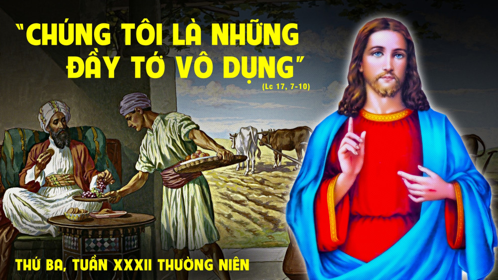 Trước khi khuyên chúng ta phục vụ hết mình và tự nhận mình là tôi tớ vô dụng, Chúa Giêsu -Ngôi Hai Thiên Chúa- đã vâng lời Chúa Cha đến trần gian trong thân phận con người hèn mọn. Ngài đến không phải để được phục vụ, nhưng là để phục vụ và hiến mạng sống cho con người (Mt 20, 28); Ngài là Thiên Chúa nhưng ở giữa các môn đệ như kẻ hầu bàn (Lc 22, 27)