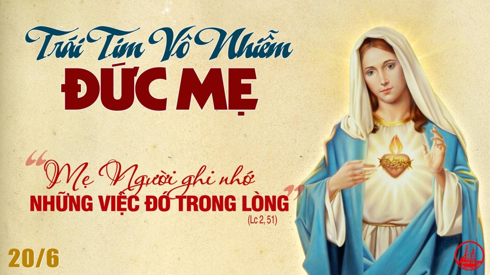 Sau lễ Thánh Tâm Chúa Giê-su, Giáo Hội kính nhớ Trái Tim Vô Nhiễm Đức Mẹ. Hẳn nhiên có sự liên kết giữa hai “Trái Tim” này. Ngay từ lúc thụ thai, trái tim của Chúa Giê-su tượng hình trong cung lòng của Mẹ. Trái tim của Chúa đi vào cung lòng Mẹ để trái tim của Mẹ từng ngày khám phá mầu nhiệm vô cùng sâu thẳm của trái tim Chúa.