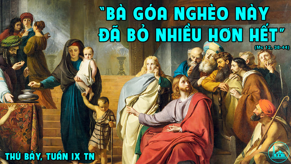Tin Mừng theo thánh Marcô thuật lại cho chúng ta câu chuyện diễn ra trong Đền thờ Giêrusalem nơi dân chúng bỏ tiền dâng cúng. Có nhiều người giàu bỏ bao nhiêu đồng tiền, song có một góa phụ nghèo, chỉ bỏ hai đồng xu nhỏ. Chúa Giêsu quan sát kỹ lưỡng người đàn bà ấy và Người lưu ý các môn đệ về sự tương phản trong cảnh tượng này. Chúa Giêsu nói, bà góa nghèo này đã bỏ nhiều hơn ai hết, bà tuy thật túng thiếu, nhưng đã bỏ vào thùng tiền tất cả những gì bà có để nuôi sống mình. Còn những người khác rút từ túi mình tiền dư bạc thừa của họ mà dâng cúng. Vậy là thước đo không phải là số lượng nhưng là với cả tấm lòng thành. Đây không phải là vấn đề ví tiền, nhưng là con tim, là tấm lòng. Có sự khác biệt giữa ví tiền và con tim.