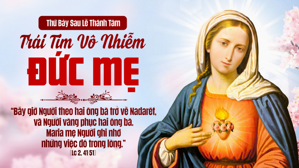 Thế nên, “Trái Tim Vô Nhiễm Đức Mẹ” mang đến hai nét chính: Không vương tội – sẵn sàng tiếp đón Lời Chúa dù bị tổn thương, sợ hãi. Mỗi khi Lời Chúa đòi ta hy sinh, có thể ta không thích, “không hiểu,” nhưng noi Mẹ kiên trì “giữ lời ấy,” dần dần mọi sự sáng tỏ. Lễ này mời ta ký thác mình cho Mẫu Tâm Mẹ, xin Mẹ giúp thanh lọc trái tim khỏi tội, để ta lắng nghe Chúa, vui lòng đón ý Chúa, dù khó. Nhìn Mẹ, ta bắt chước sự hiền hòa, khiêm nhường, ẩn nhẫn, tin yêu, để Chúa thể hiện kế hoạch.