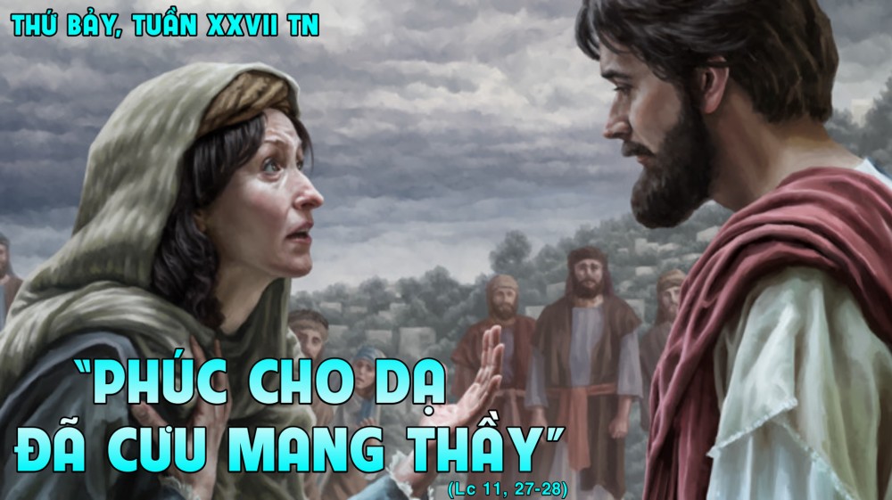 Ngày hôm nay, ta thấy giữa đám đông đang nghe Đức Giêsu giảng, có một phụ nữ, vì cảm phục trước việc Chúa làm phép lạ trừ quỷ câm, ngây thơ không biết khen ngợi Chúa thế nào, đã thốt ra câu khen ngợi Mẹ Ngài: “Phúc thay người mẹ đã cưu mang và cho Thầy bú mớm”. Nhưng Chúa nói: “Phúc thay kẻ lắng nghe và tuân giữ lời Chúa”. Chúa nói thế không phải là Ngài coi rẻ Đức Maria, trái lại còn gián tiếp ca tụng Người: Người vừa là Mẹ ruột đã sinh ra Ngài, vừa là một người luôn lắng nghe và thực hiện lời Thiên Chúa.