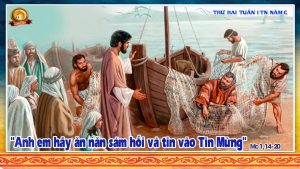 Lời đầu tiên Chúa Giêsu công bố khi đi rao giảng Tin Mừng Nước Trời hôm nay là: “Anh em hãy sám hối và tin vào Tin Mừng”. Chúa Giêsu đã nối kết việc sám hối với rao giảng Tin Mừng. Tin Mừng chính là tình yêu cứu độ của Thiên Chúa được thể hiện qua con người của Đức Giê-su? Sám hối không chỉ là hồi tưởng về quá khứ của mình, không dừng lại ở thái độ buồn phiền, sợ hãi thất vọng, nhưng là một chặng đường phải trải qua để đạt đến niềm vui là tin vào Tin Mừng.
