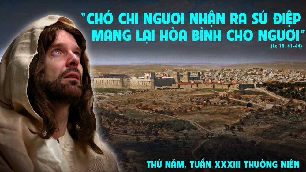 Lời Chúa hôm nay cho thấy Chúa Giêsu khóc thương Giêrusalem, bởi thành đã không nhận ra Chúa là nguồn bình an. Chúa Giêsu khóc thương thành, Người cũng khóc thương những người Do thái đương thời. Họ không nhận ra Thiên Chúa đang biểu lộ tình thương giữa họ.