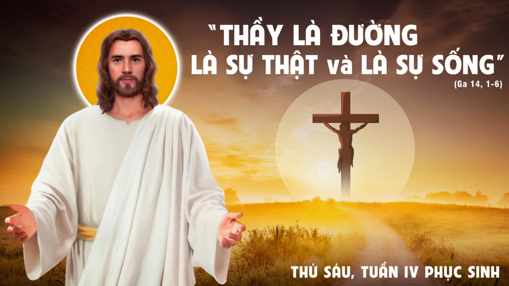 Cũng trong khung cảnh bữa tiệc ly, Chúa Giêsu đang nói cho các tông đồ những lời rất thân tình, tha thiết. Ngài báo cho họ biết Ngài sẽ ra đi, đi đến một nơi mà họ rất lạ. Nhưng Ngài hứa sẽ trở lại đón họ để cùng đưa họ đến nơi đó. Ông Tôma tò mò hỏi: “Lạy Thầy, chúng con không biết Thầy đi đâu, làm sao chúng con biết đường đi ?”. Chúa Giêsu đáp: “Thầy là đường, là sự thật, và là sự sống. Không ai đến được với Cha mà không qua Thầy”. Nghĩa là: mục tiêu hành trình của mọi người là về với Thiên Chúa là Cha, Chúa Giêsu chính là người dẫn đường, hơn nữa Ngài chính là con đường đẫn ta đến đích điểm đó.