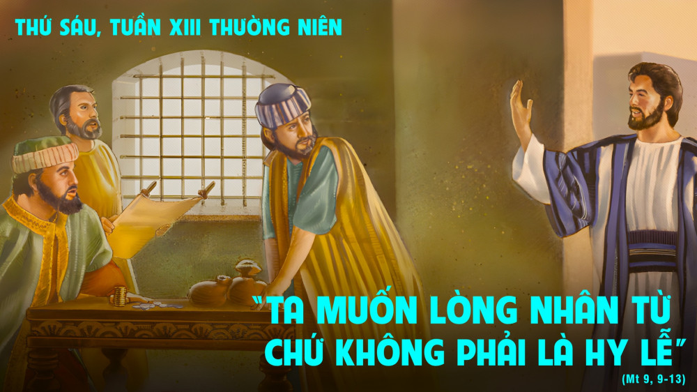Tin Mừng hôm nay kể chuyện Chúa Giê su gọi Thánh Mátthêu, một người thu thuế, bị người đời khinh ghét, nhưng lại được Chúa Giêsu chọn làm tông đồ. Thanh danh những người thu thuế đang bị “khinh khi”, vì họ cộng tác với người La mã, và làm giàu trên xương máu của dân nghèo. Hạng người này thông thường khá giàu có…