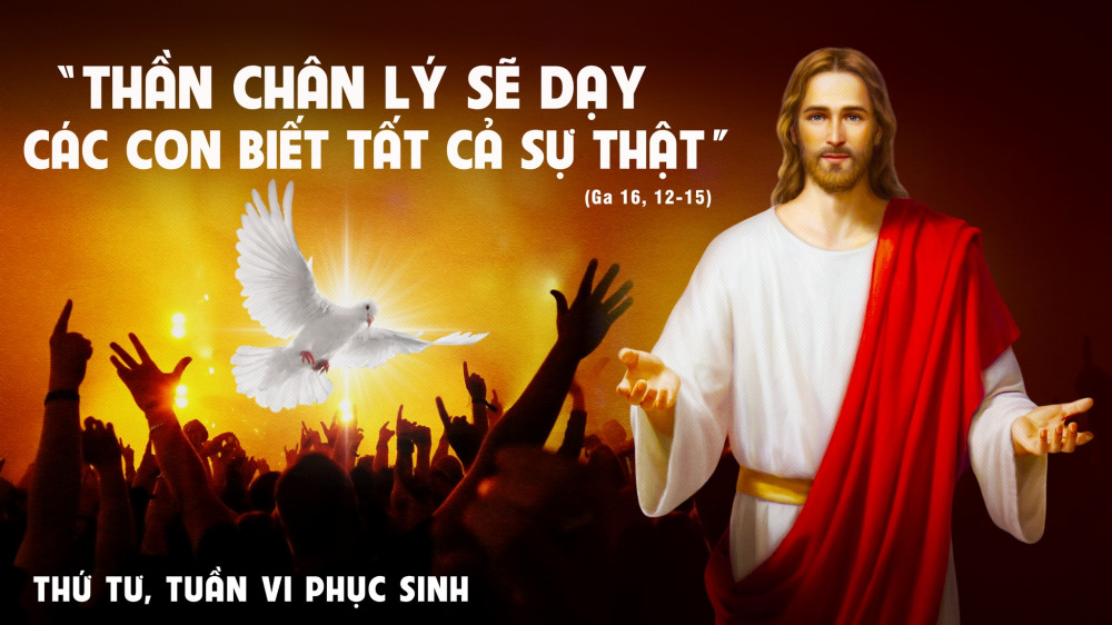 Trước khi trở về cùng Chúa Cha, Chúa Giêsu đã hứa ban Chúa Thánh Thần cho các môn đệ (Ga 14, 16). Chúa Thánh Thần là Thần Chân Lý giúp các môn đệ thấu hiểu Mầu Nhiệm Vượt Qua của Chúa Giêsu (Ga 16, 5-13). Mầu Nhiệm này, tự sức mình, con người không thể thấu hiểu được (Ga 16, 12b), bởi lẽ, không ai biết được những gì nơi Thiên Chúa, nếu không phải là Thánh Thần của Thiên Chúa ban cho (1 Cr 2, 11). Như vậy, với sự hướng dẫn của Chúa Thánh Thần, con người sẽ thấy được vẻ đẹp tròn đầy của Sự thật (Ga 16, 13).