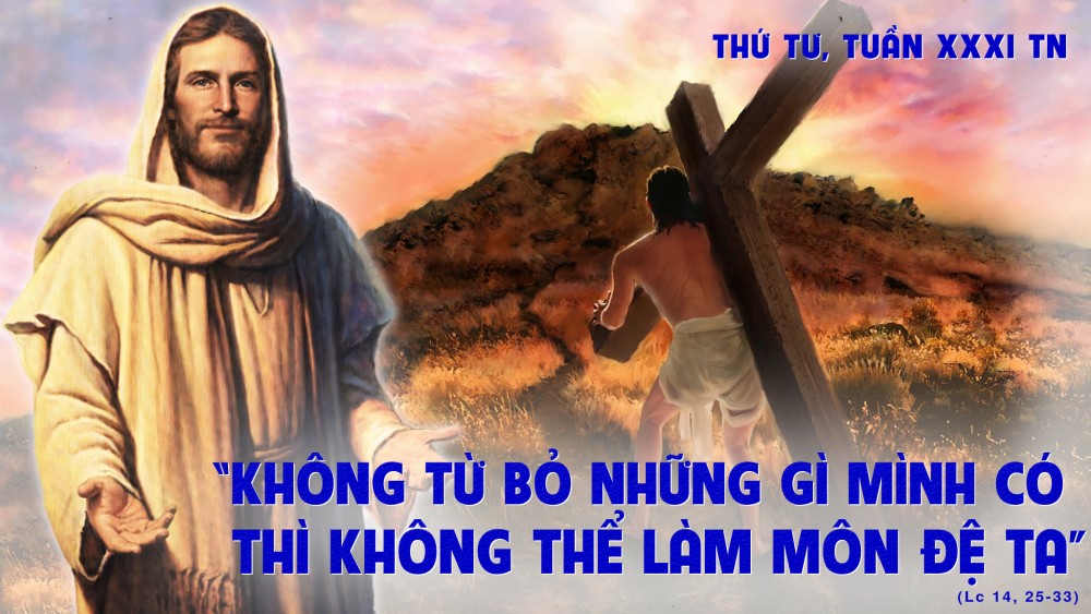 Trình thuật Tin mừng hôm nay nối tiếp trình thuật về dụ ngôn ‘Những người khách được mời dự tiệc cưới’ (x. Lc 14, 16 – 24). Những người khách này từ chối vinh hạnh được dự tiệc với nhiều lý do: “Tôi mới cưới vợ”, “Tôi mới mua thửa đất phải đi thăm”, “Tôi mới tậu năm cặp bò phải đi thử” – Họ đã coi trọng những lợi ích bản thân, những giá trị vật chất hơn tình thân mà chủ dành cho họ, và do đó họ không bao giờ được dự bữa tiệc trọng đại mà họ đã được mời ấy nữa. Lời Chúa Giêsu dạy là một đòi hỏi triệt để: bước theo Chúa là phải hy sinh, phải từ bỏ! Không một từ bỏ nào mà không có sự lựa chọn. Chúng ta lựa chọn theo Chúa hay theo thế tục? Ở đây không có sự bắt cá hai tay, không có thỏa hiệp giữa thiện và ác, không có sự dung túng cho những thói hư tật xấu và việc bước theo con đường hẹp của Chúa Giêsu.